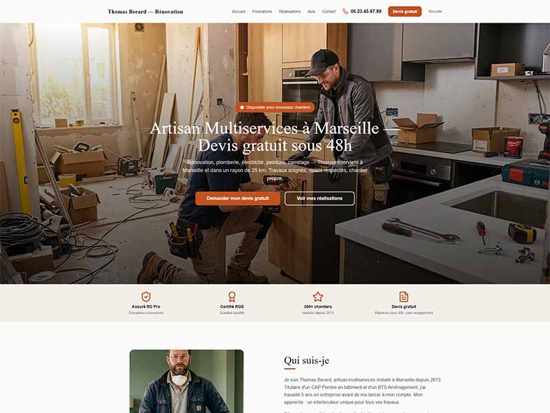 Site web pour Artisan Rénovation — 490€ · 7 jours